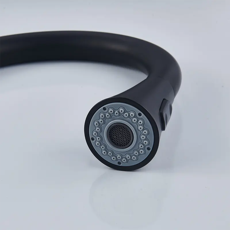 En svart utdragbar kökskran kan förbättra den moderna och avancerade känslan av köket, särskilt lämpligt för parning med engelska sänkor, djupa skåp eller industriella mönster, vilket gör det visuellt mer enhetligt.