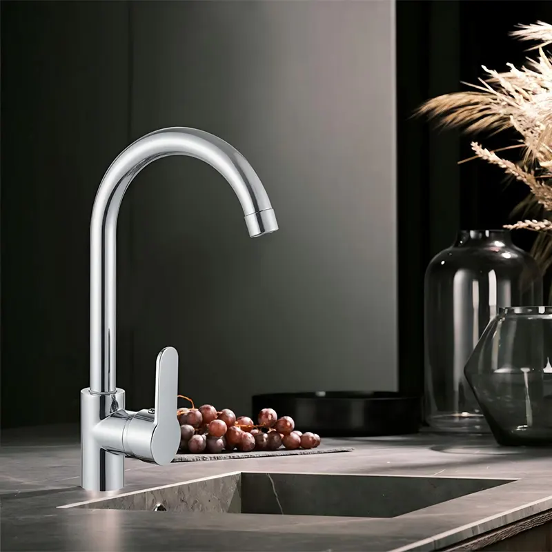 3. Denna kallkökskran har en 360° rotationsfunktion, som flexibelt kan justera vinkeln på vattenutloppet, täcka olika områden av diskbänken och förbättra bekvämligheten med köksstädning.